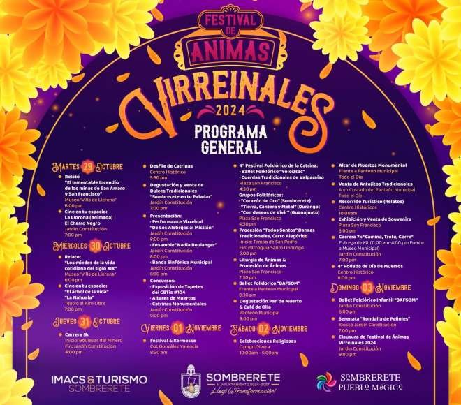INVITACIÓN PARA LOS EVENTOS PROGRAMADOS DEL FESTIVAL DE ÁNIMAS VIRREINALES