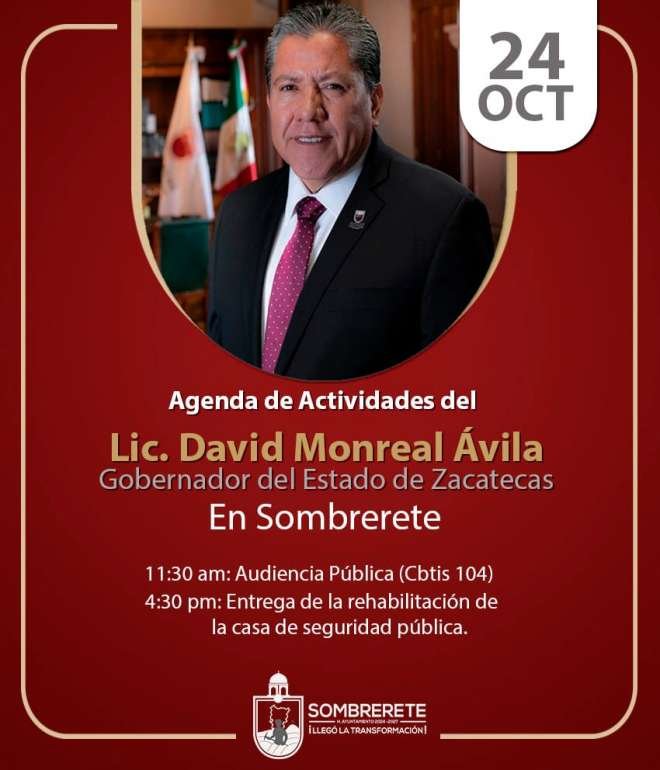 AGENDA DE ACTIVIDADES DEL GOBERNADOR DAVID MONREAL DEL ESTADO DE ZACATECAS