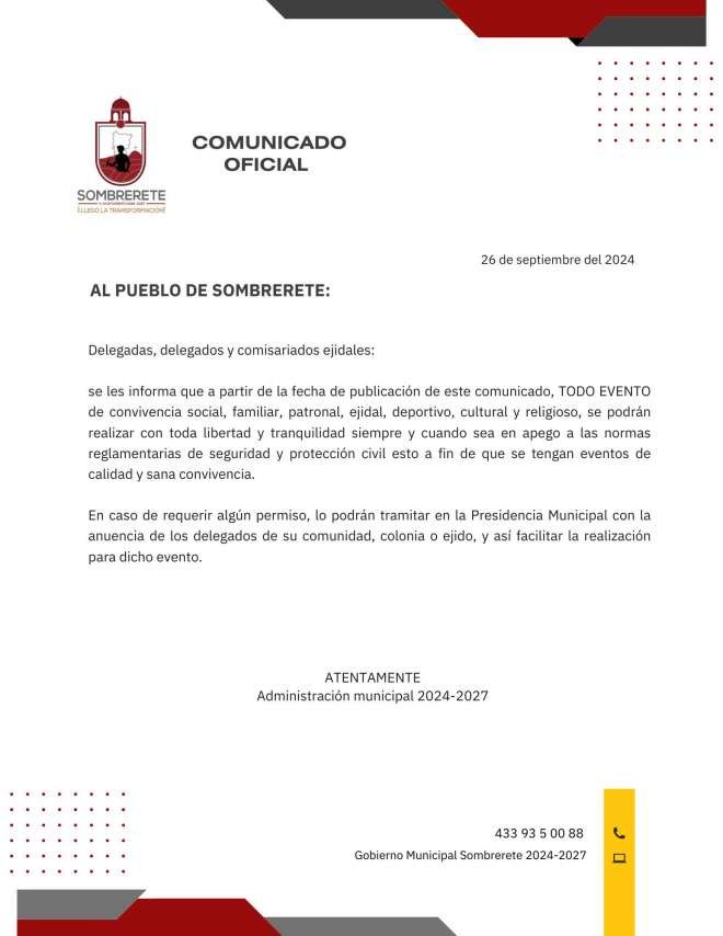 | Manténgase informado con los acontecimientos de Sombrerete y el trabajo que se realiza en esta administración. |