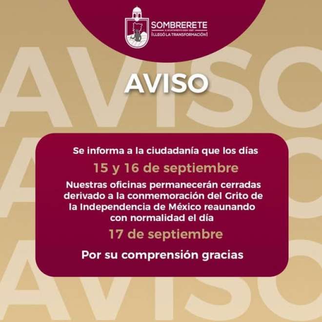 | Manténgase informado con los acontecimientos de Sombrerete y el trabajo que se realiza en esta administración. |