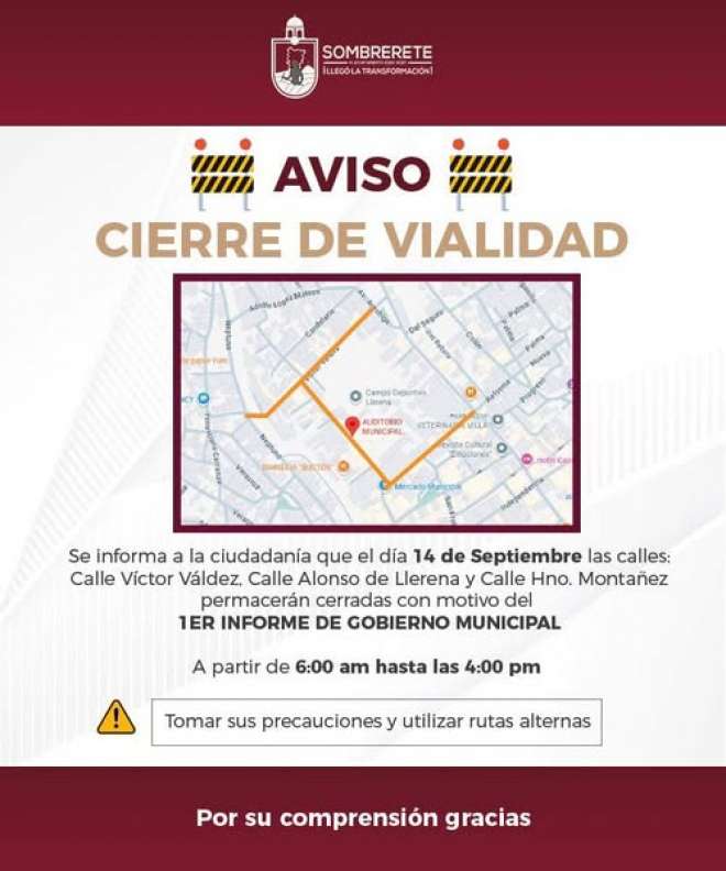| Manténgase informado con los acontecimientos de Sombrerete y el trabajo que se realiza en esta administración. |