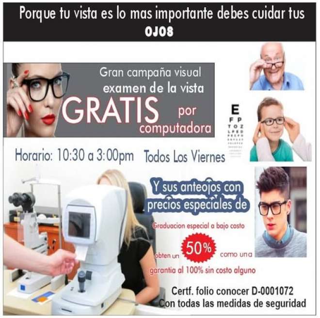 CAMPAñA VISUAL, CON EXAMEN DE LA VISTA GRATUITO.