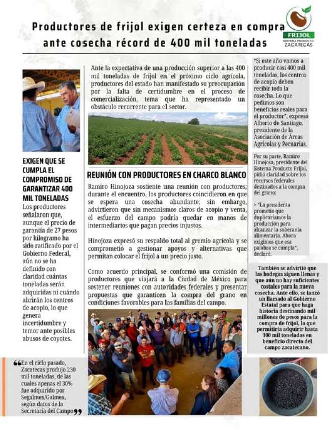 PRODUCTORES DE FRIJOL EXIGEN CERTEZA EN COMPRA ANTE COSECHA RéCORD DE 400 MIL TONELADAS
