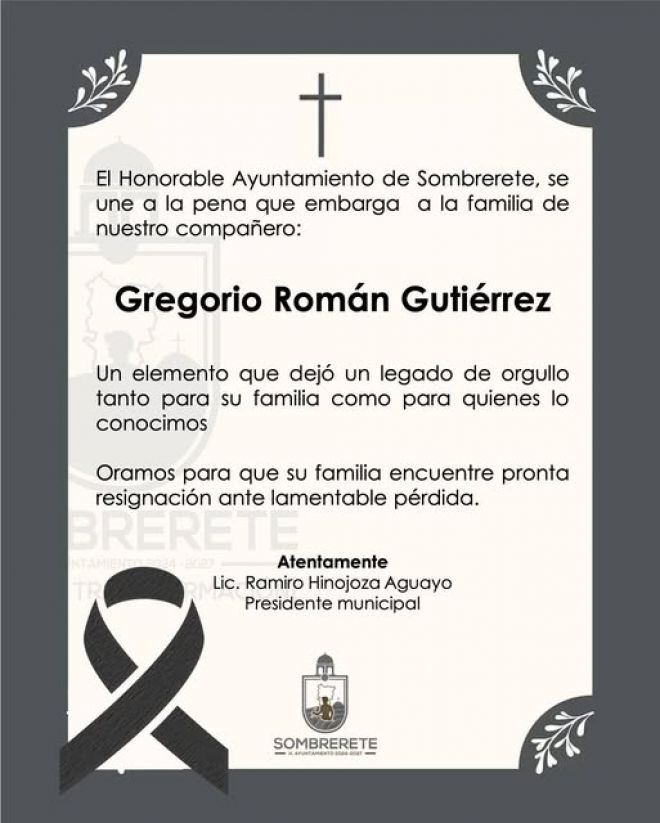 ORAMOS PARA QUE LA FAMILIA DE NUESTRO COMPAñERO ENCUENTREN PRONTA RESIGNACIóN ANTE LAMENTABLE PéRDIDA.