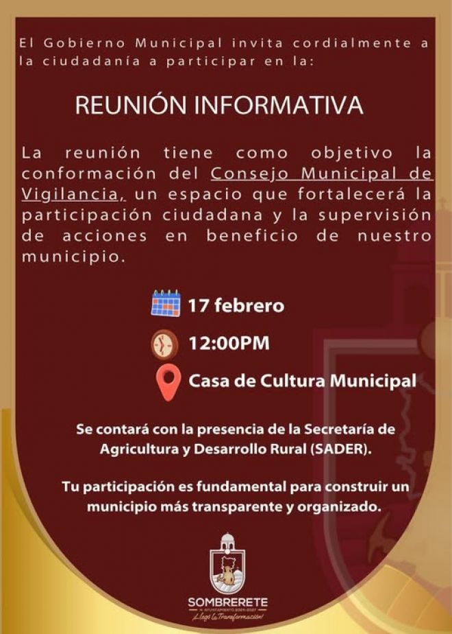 | Mant�ngase informado con los acontecimientos de Sombrerete y el trabajo que se realiza en esta administraci�n. |