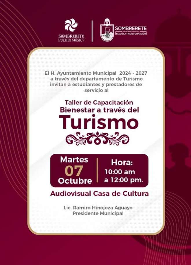 "TALLER DE CAPACITACIóN BIENESTAR A TRAVéS DEL TURISMO"