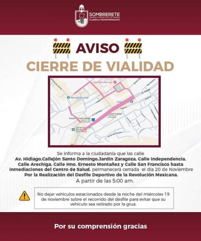 | Manténgase informado con los acontecimientos de Sombrerete y el trabajo que se realiza en esta administración. |