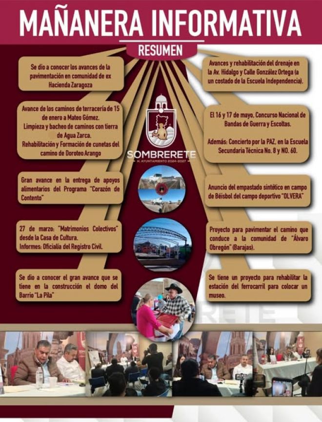| Mant�ngase informado con los acontecimientos de Sombrerete y el trabajo que se realiza en esta administraci�n. |